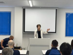 その後は輸送部課長より前期の振り返りと反省について展開がありました。前期不具合件数と内容を今一度全社員で擦り合わせを行い、なぜその事故は発生したのか?何をすればその事故は防げたのか?振り返り反省する事からでしか成長は望めません。前期の反省を糧に今期は必ず目標値を達成する事を全社員で誓いました!