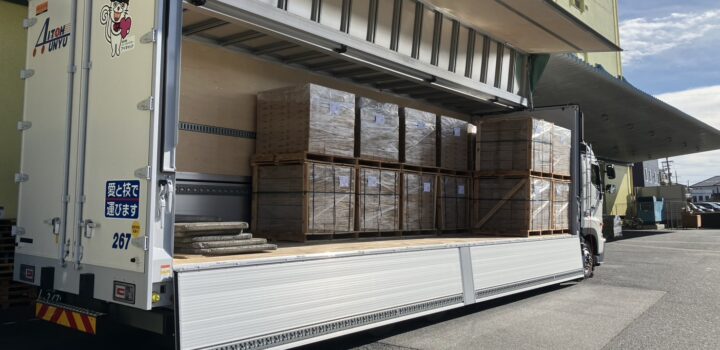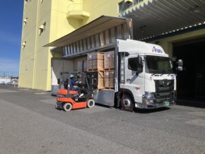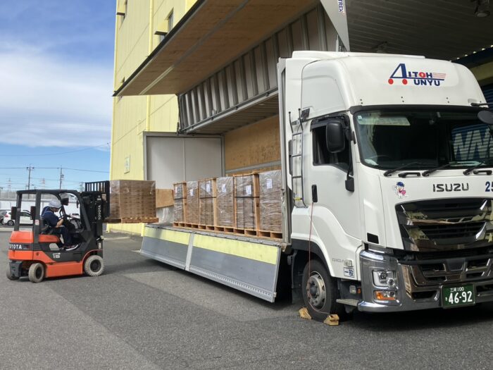 最近ではお客様からのニーズとしてデバンニングの案件、お問い合わせをいただいております。40フィートコンテナでの入庫、荷下ろしからの輸送となります。輸送コストの効率化などを踏まえ、益々多様化するニーズにお応えできるよう、愛東運輸では日々新たな業務を受け入れられる体制作りに力を入れております!