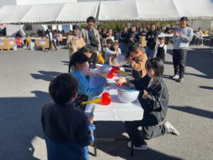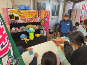 一方で子供達にも楽しんでいただけるようにと射的ゲームやヨーヨーすくいのコーナーも準備され、こちらもずっと子供達の人だかりが出来ていました!欲しい景品を狙って「もう一回!」と最後まで大賑わいのコーナーでした!普段は真剣な表情でトラックを運転しているおじさん達も子供達に囲まれて終始にこやかな表情でした!