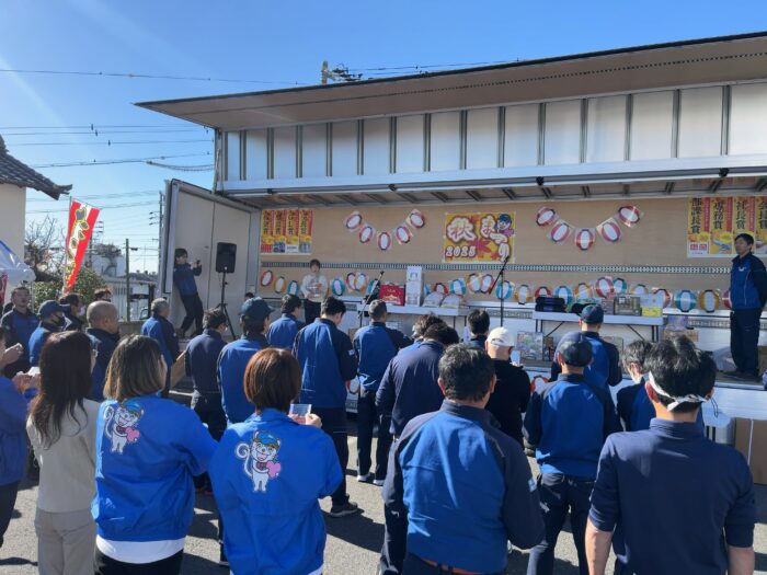 昨日は朝から天候にも恵まれ絶好のイベント日和となりました!前日から沢山の社員の皆様のお手伝いもあって予定通り秋祭り2025が行えた事に感謝です!今回の秋祭り開始の乾杯音頭はこの度定年退職を迎えた事務員の方に行ってもらいました!乾杯の合図と共に秋祭り2025がスタートしました!