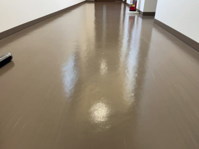 清掃が終わった後の休憩室がこちらです!日々の拭き掃除では取れなかった頑固な汚れもすべて落ちて綺麗になりました!ワックスがけもしかっりと効いていて天井の照明が床に反射するほどピカピカの仕上がりとなりました!この状態を出来る限り維持できるように普段からの清掃にも力を入れて取り組んで参ります!