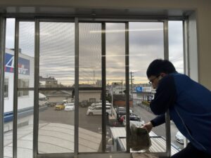 事務所や研修棟に取り付けられているブラインドも取り外して一年の汚れを落とします!愛東社員の大掃除はプロの清掃業者にも負けないほどの「こだわり」があります!今年一年、お世話になった気持ちと来年もお願いしますの気持ちが清掃へのこだわりになります!