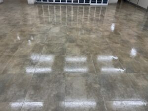 お昼前にはすべての場所の清掃が終わり、事務所や研修棟のワックスも乾いてご覧の通りピカピカになりました!天井の照明の光が床に映り込むほどに磨き上げられた様はとっても気持ちの良いものです!グループミーティング冒頭の社長あいさつの中で村山社長が仰った「魂を磨くと言う目に見えない事を具現化したのが清掃活動です」の意味がとても理解できました。今年も一年間本当にありがとうございました!