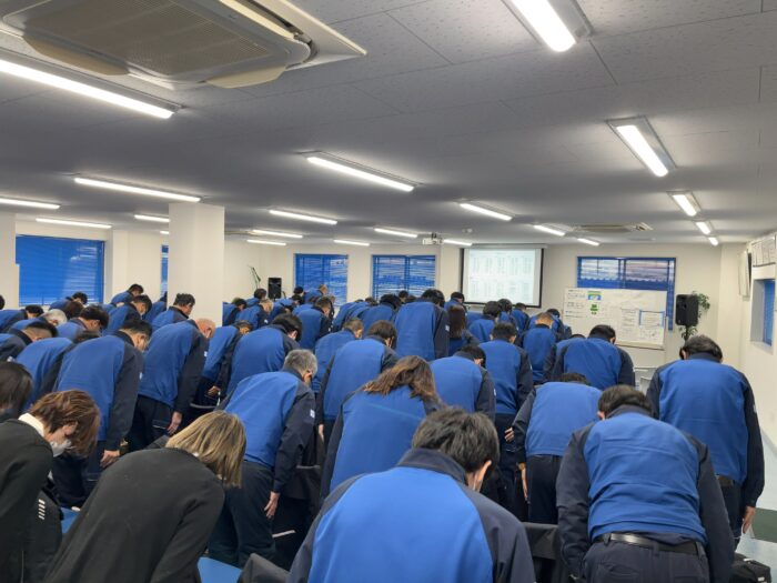 冒頭には村山社長より新年のご挨拶がありました。その中で社長ご自身の今年のテーマについて発表がありました!それは「常に考える」と「笑顔」の二つです!会社のトップが明るく笑顔でなければ会社は明るくならないとおっしゃられておりました。私自身も部門を任される立場として、とても心に響くお言葉でした。どんな時でも明るく明朗な自分であるためには心の在り方が重要である事を改めて実感致しました!