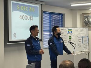 続いてのSDEC運動表彰では初となる4,000日達成者が表彰されました!入社以来、無事故無違反無クレームを更新し続け、今回の偉業達成となりました!毎日の業務をこなしながら4,000日と言う長い期間を無事故で迎えるために現場での凡事徹底を貫き通してきた結果ではないでしょうか。表彰された社員も満面の笑みでしたがそれ以上に社長の笑顔も印象的でした!今後も更に記録を伸ばし皆さんの目標として頑張ってくれる事でしょう!