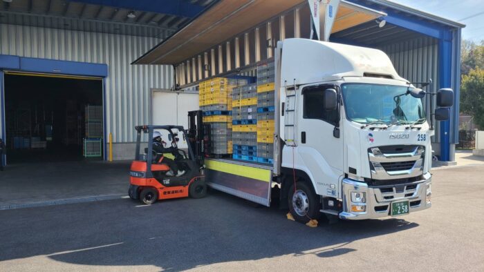 こちらは2月上旬に行われたチームミーティングの様子です。この日はチームメンバー全員で東郷BRCへ移動してリフト訓練を行いました!普段あまり乗る機会がないリーチリフトを使っての積み込み模擬実習を行うことで、お客様先で様々なリフトに対応できるよう技量を高めます!