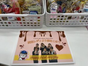 2月13日(金)には愛東レディの皆様よりバレンタインチョコをプレゼントしていただきました!寒空の中での運行を終えて帰ってきた社員もこれには思わずニッコリ!とても温かい気持ちになりました!常に社員の皆さんの事を考え、支えて下さる事務員の皆様には感謝しかありません。いつも有難うございます!