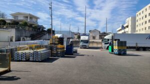 こちらは2月上旬に行われたチームミーティングの様子です。この日はチームメンバー全員で東郷BRCへ移動してリフト訓練を行いました!普段あまり乗る機会がないリーチリフトを使っての積み込み模擬実習を行うことで、お客様先で様々なリフトに対応できるよう技量を高めます!